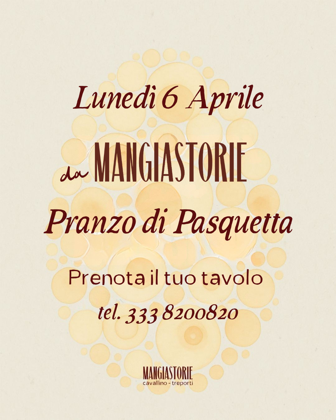 Lunedì 6 aprile, Mangiastorie vi accoglie per il pranzo di Pasquetta, un momento da vivere con leggerezza e in compagnia.